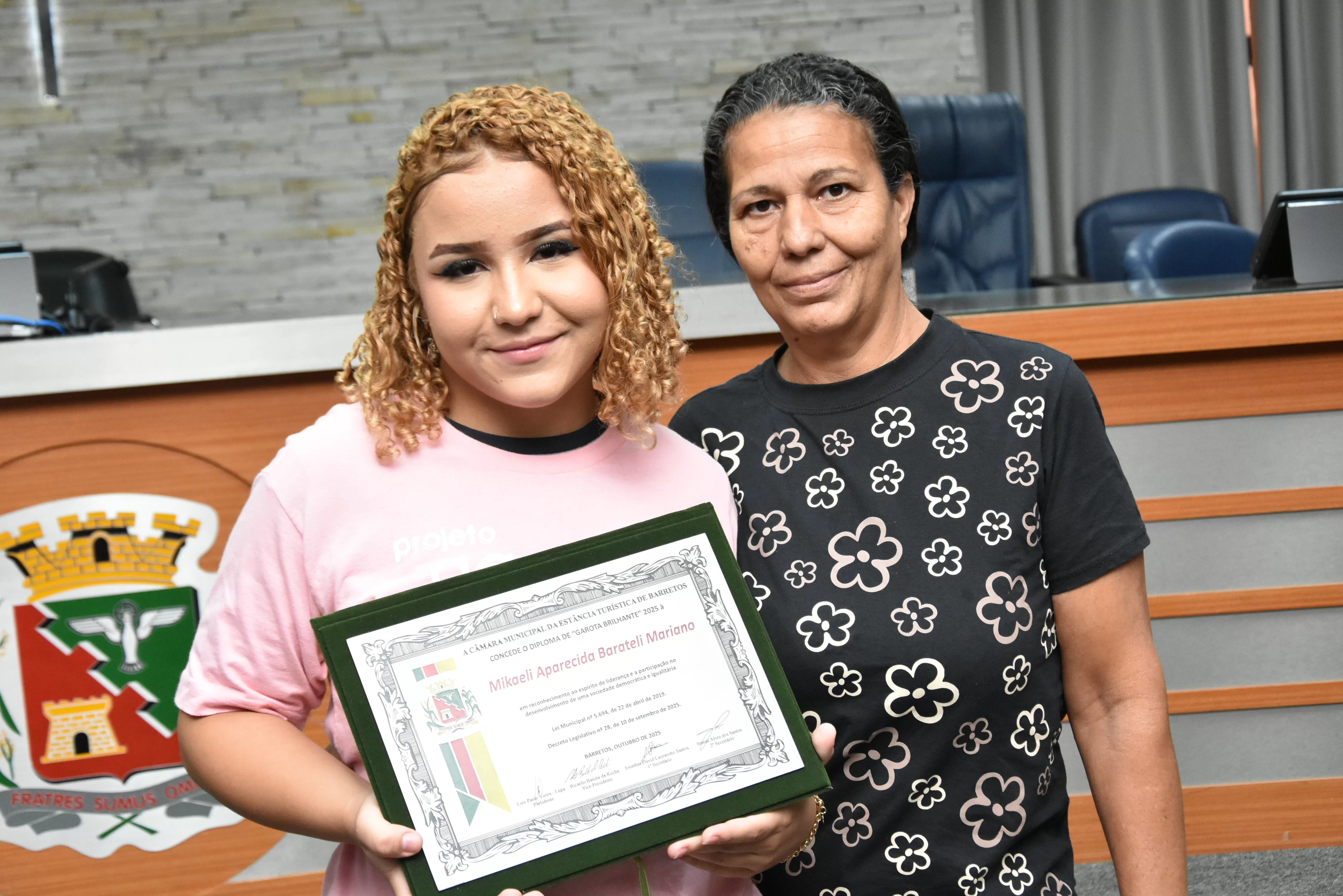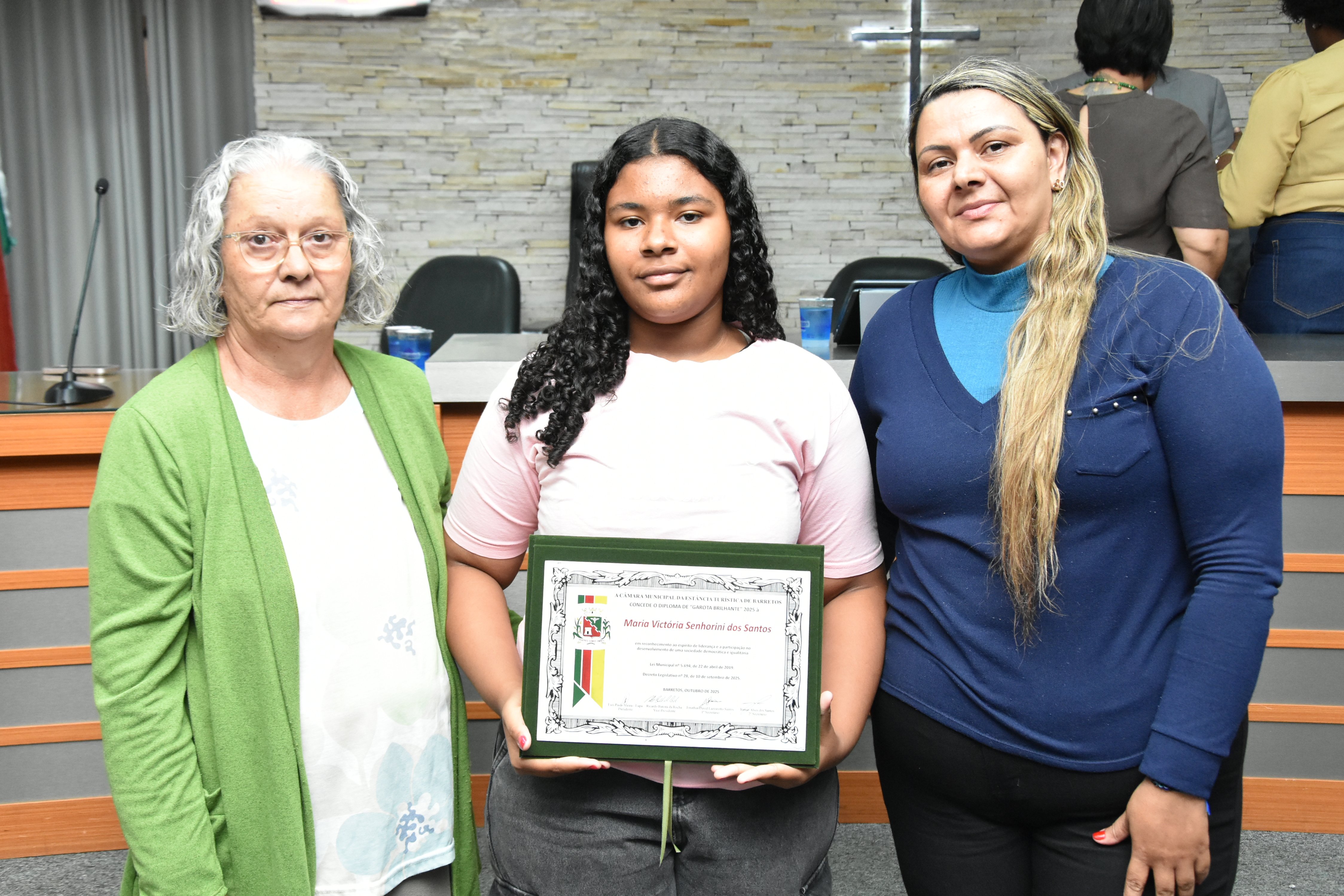 A Sessão Solene para a entrega dos Diplomas "Garota Brilhante" acontece em cumprimento à Lei Municipal nº 5.694/2019, da ex-vereadora Paula Lemos.