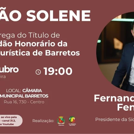 Câmara de Barretos realiza Sessão Solene em homenagem ao presidente da Sicredi Aliança, Fernando Barros Fenner