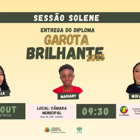 Meninas do projeto social Garotas Brilhantes serão homenageadas na Câmara
