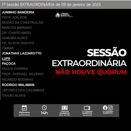 Não houve quórum na 1ª Sessão Extraordinária de 2026