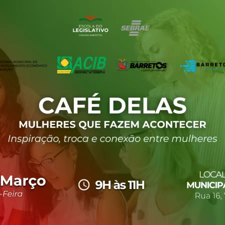 O evento acontecerá no dia 31 de março (terça-feira), das 9h às 11h, na Câmara Municipal de Barretos. O objetivo será incentivar o protagonismo feminino, estimular o empreendedorismo e proporcionar um espaço de troca de experiências, aprendizado e networking.